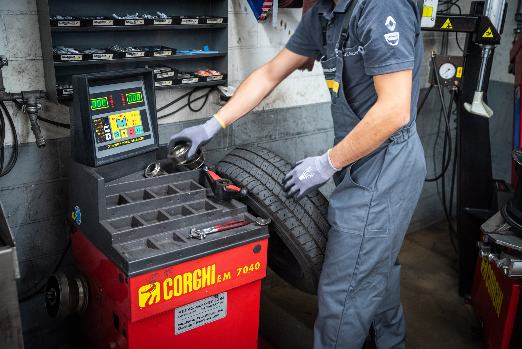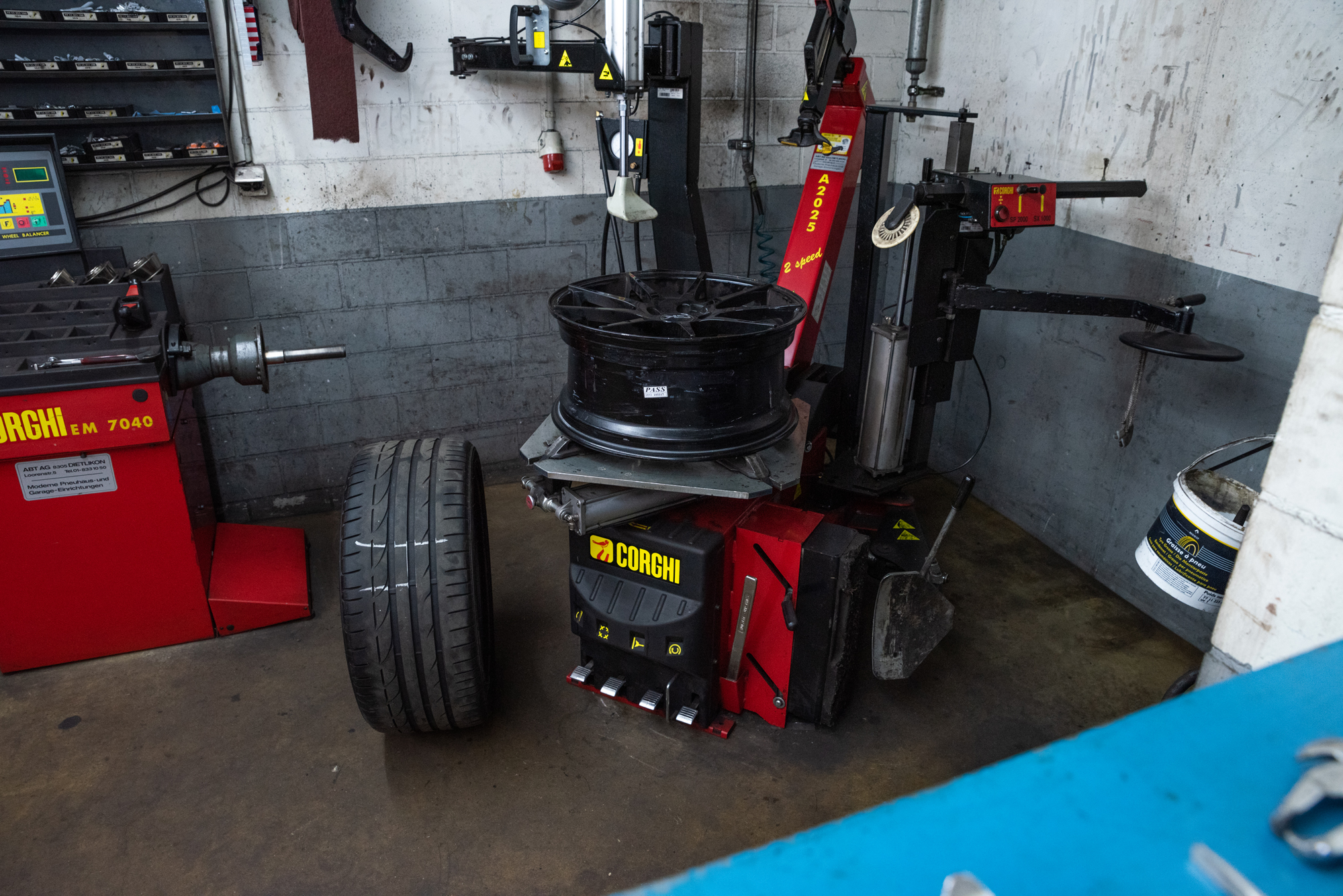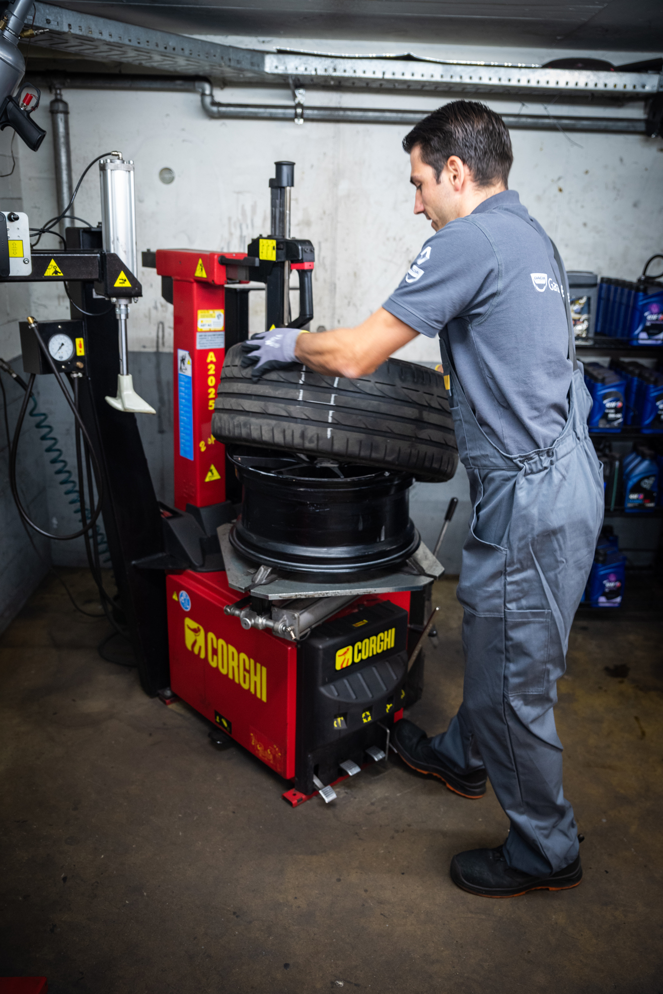 Dank unseren 2 Zweisäulenlifte, 2 Einsäulenlifte, 1 Viersäulenlift und 1 Scherenlift die bis zu 4500Kg Tragfähigkeit haben, Können wir Jedes Fahrzeug individuell Heben. Mit unserer Pneumaschiene werden bis 24" Zoll Pneu ab und aufgezogen mit verstärktem Arm und Kantenschutz werden keine Felgen beschädigt. Zudem wird jedes Rad ausgewuchtet mit Felgen angepassten Gewichten. Die Fahrzeuge werden mittels Prüfstrasse getestet um Bremsen, Stossdämpfer und Lenkgeometrie perfekt einzustellen oder zu reparieren.